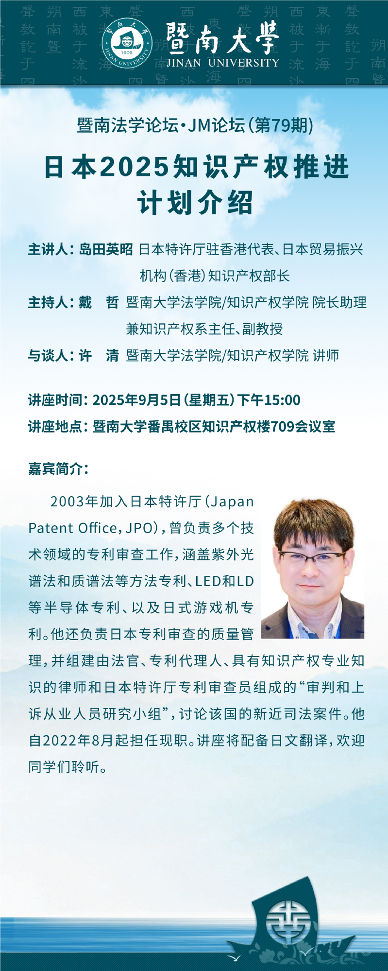 暨南法学论坛·JM论坛(第79期) | 日本2025知识产权推进计划介绍