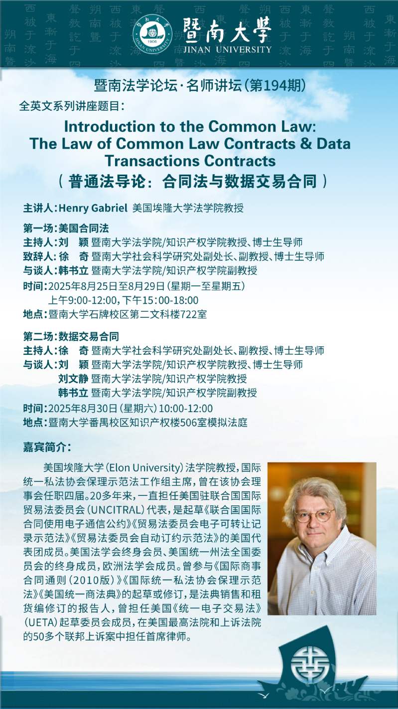 暨南法学论坛·名师讲坛(第194期) | 普通法导论:合同法与数据交易合同