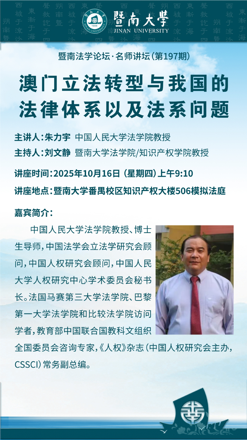 暨南法学论坛·名师讲坛(第197期) | 澳门立法转型与我国的法律体系以及法系问题