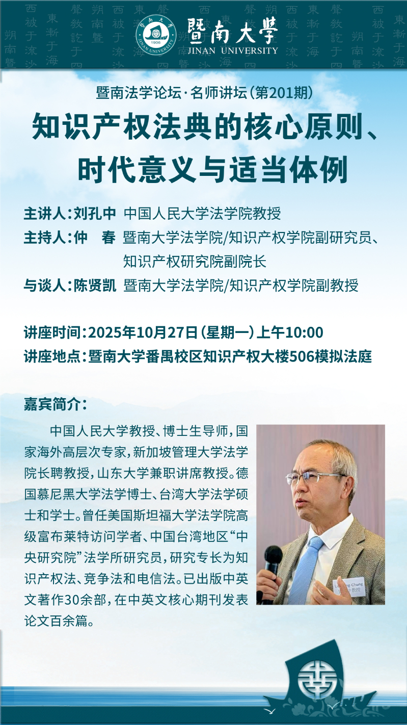 暨南法学论坛·名师讲坛(第201期) | 知识产权法典的核心原则、时代意义与适当体例