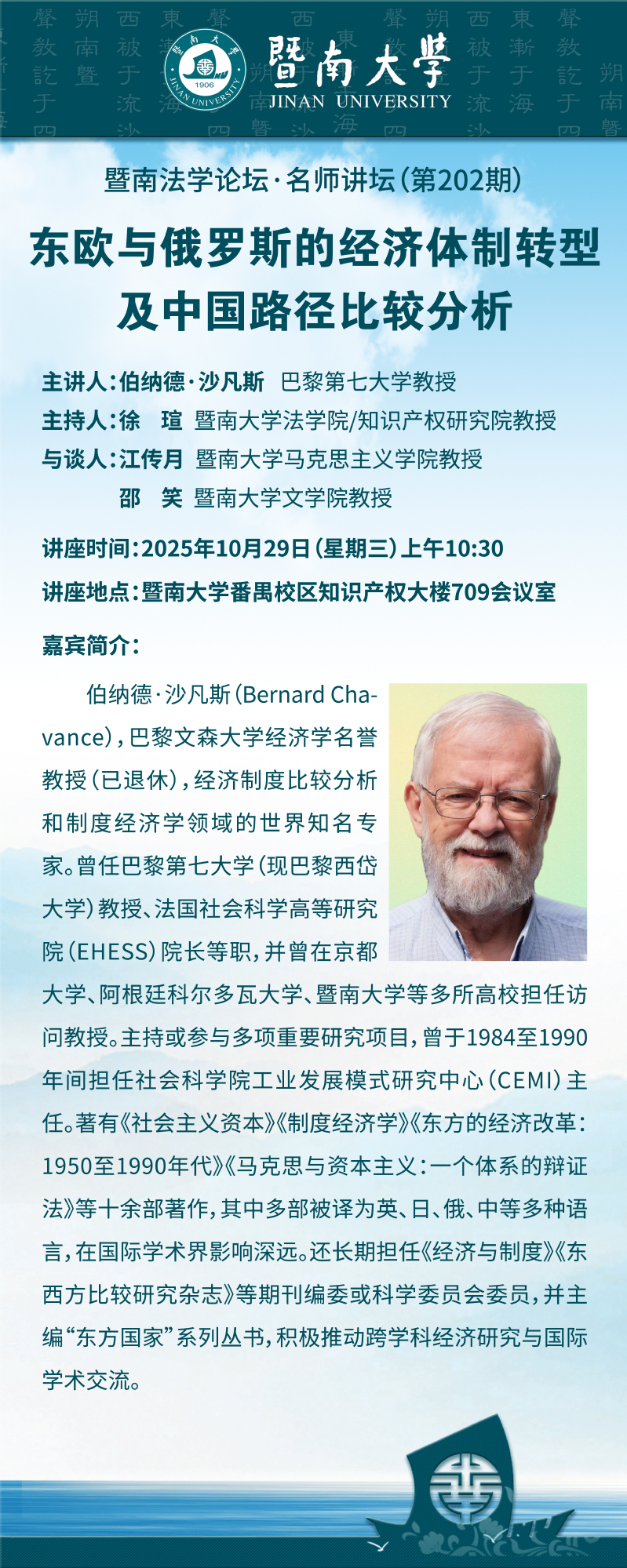 暨南法学论坛·名师讲坛(第202期) | 东欧与俄罗斯的经济体制转型及中国路径比较分析