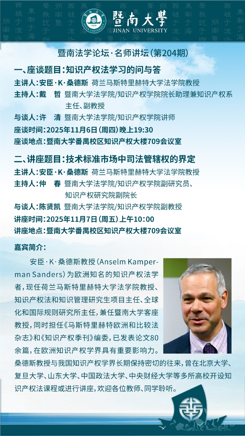 暨南法学论坛·名师讲坛(第204期) | 技术标准市场中司法管辖权的界定