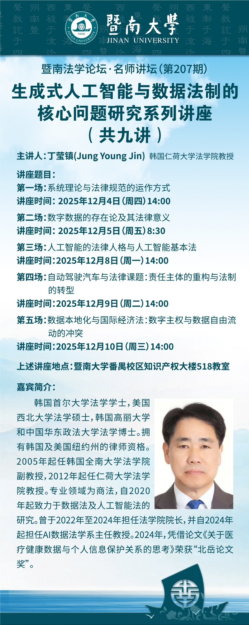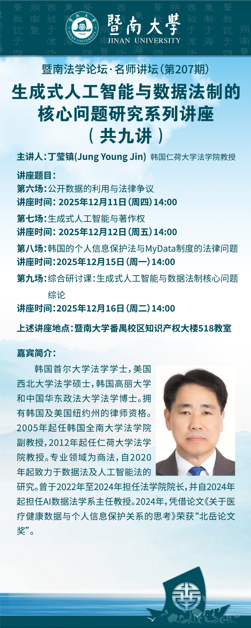 暨南法学论坛·名师讲坛(第207期) | 生成式人工智能与数据法制的核心问题研究系列讲座